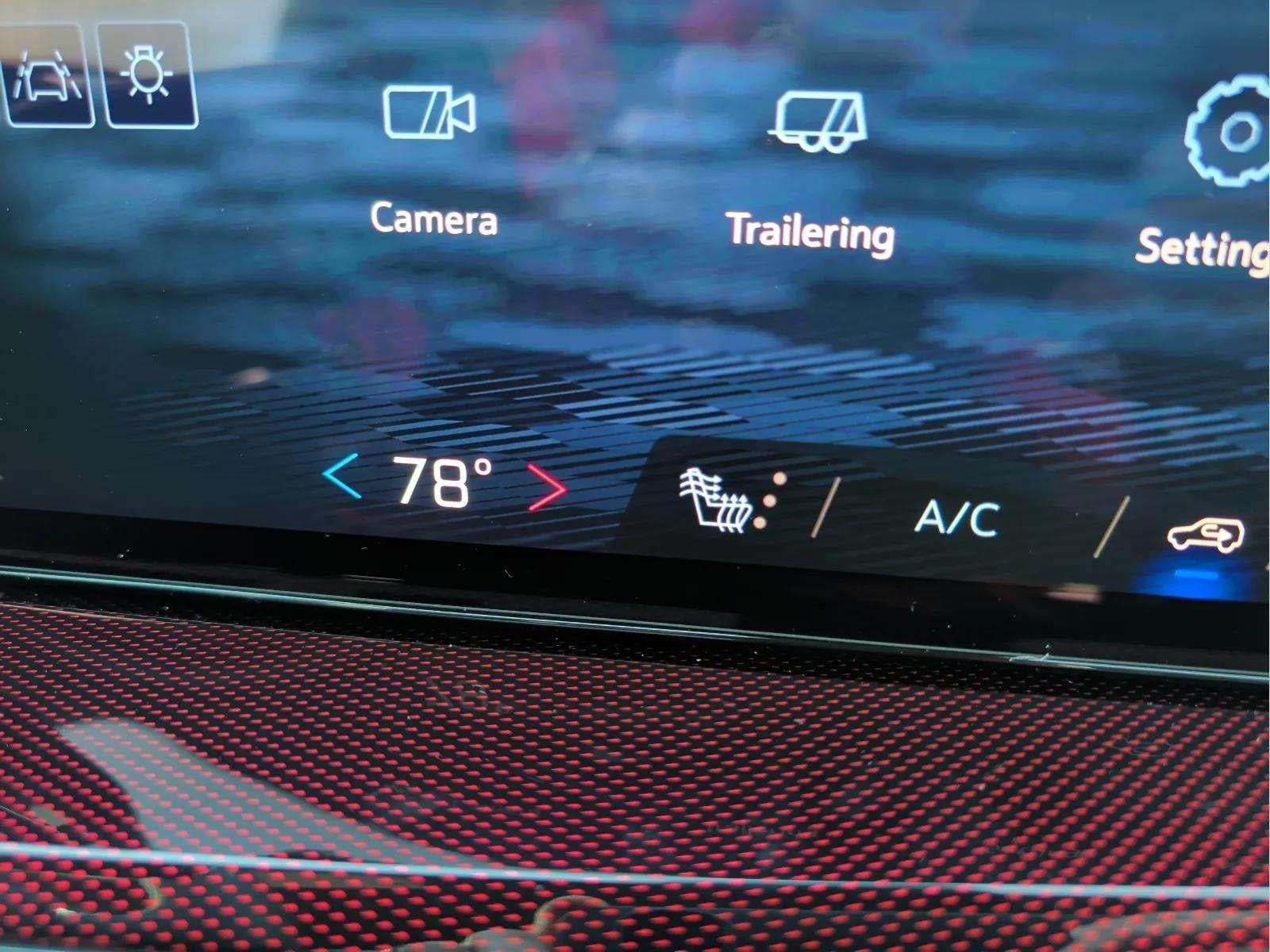 - Auxiliary controls in the rear of the cabin include air delivery mode and temperature up/down settings